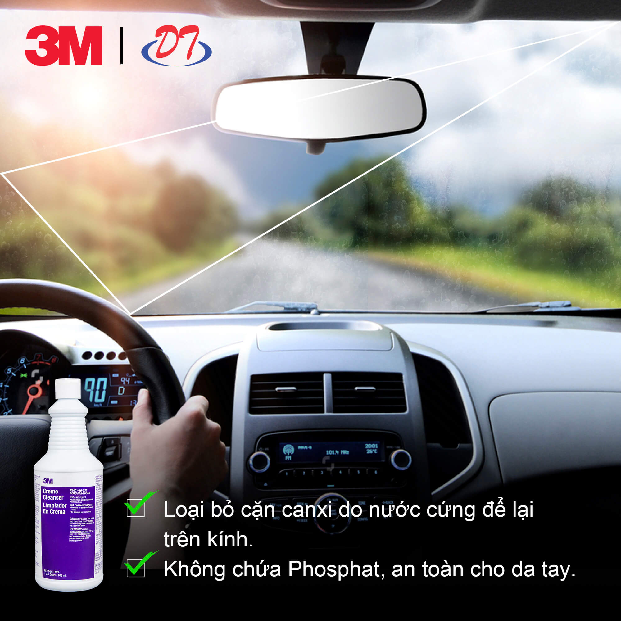 Bước 4: Dùng một lượng dung dịch vừa đủ 3M Creme Cleanser lên bề mặt kính.