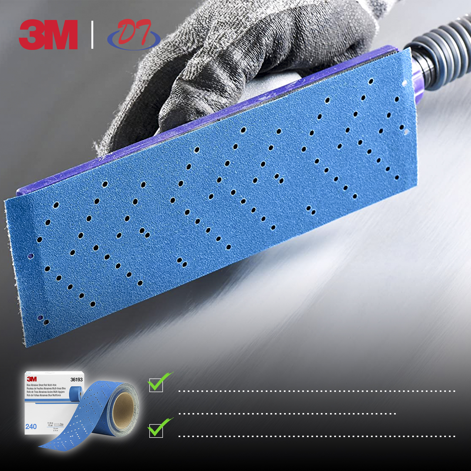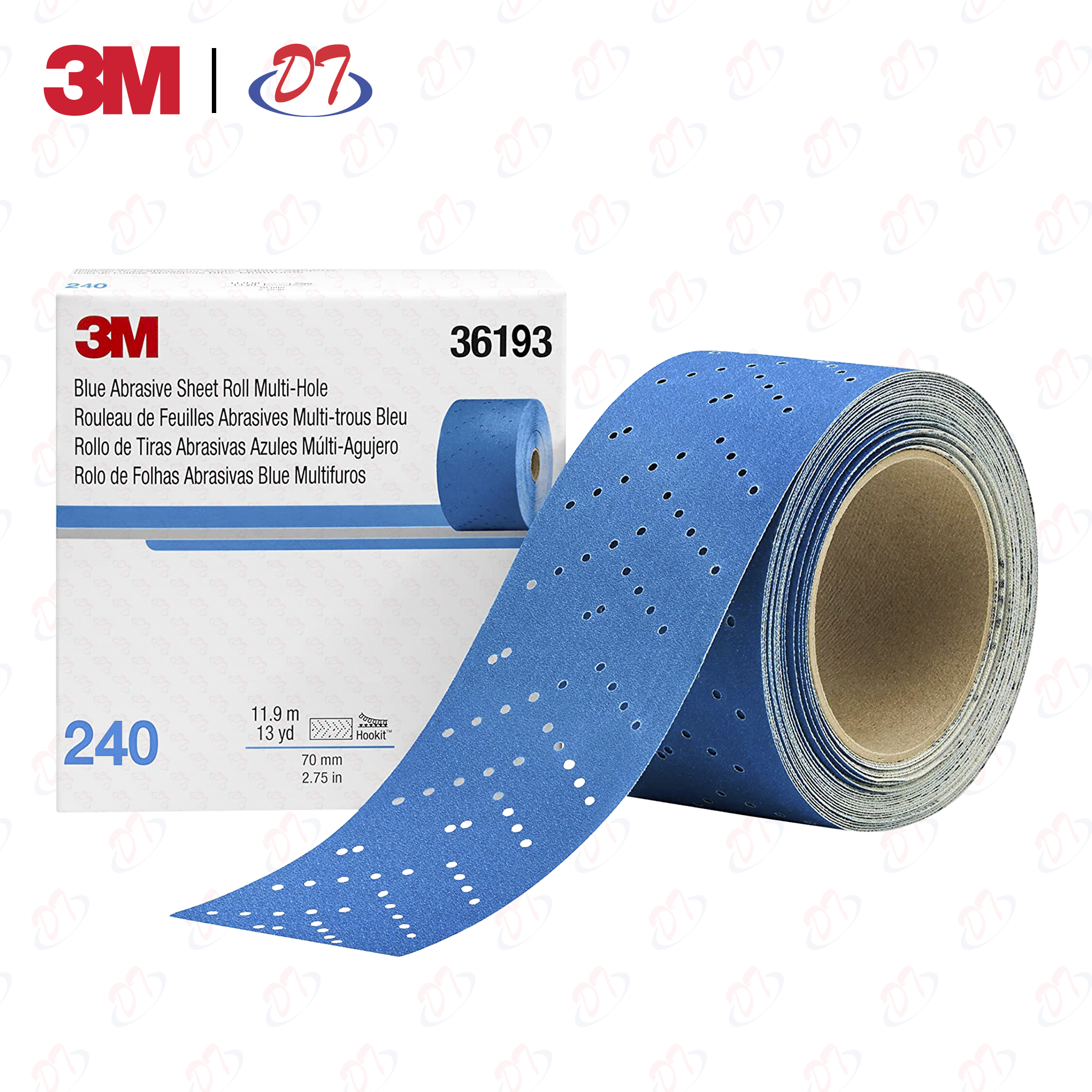 Nhám thanh xanh 3M™ 36193 Hookit™ Blue Abrasive Sheet Roll Multi-hole 321U P240 70mm x 11.9m